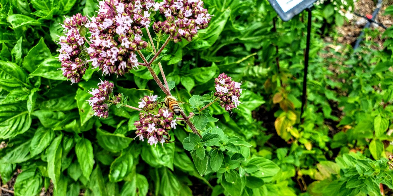 Many herbs are wonderful for supporting pollinators. In fact you can even plant an insectary strip in your garden comprised of flowering herbs such as basil, cilantro/coriander, dill, fennel or oregano. Oregano actually has one of the highest sugar concentrations-at up to 76% in its nectar. Pollinators will love you for including herbs and letting them go to flower in the garden.