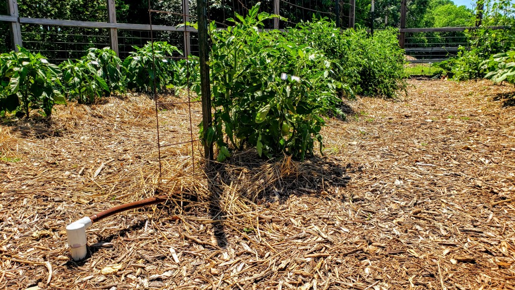 Drip irrigation is another helpful tool when growing tomatoes since it places water directly at the root system which avoids getting the leaves wet (which can lead to more disease pressure).