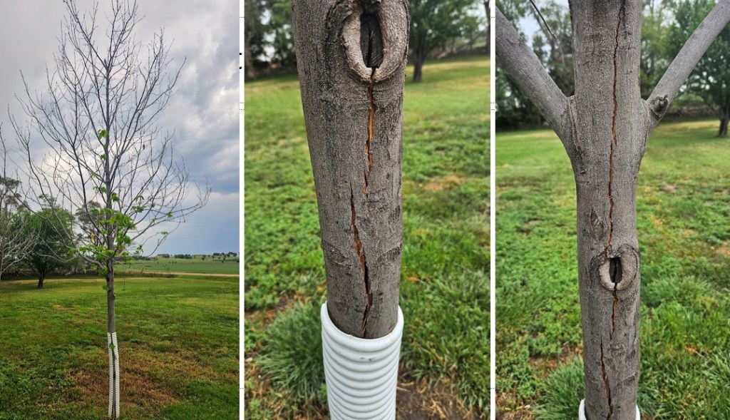 However, Kansas’s unpredictable winters often include above average December temperatures that can slow or interfere with proper acclimatization. We also encounter midseason warm spells—sometimes in January or February—that can confuse plants. These warm periods, especially after chilling hour requirements have been met, may disrupt acclimatization and trick plants into breaking dormancy too soon. Buds may swell, bark tissues may activate, and cambium cells may resume activity, only to suffer severe damage when a sharp freeze follows.