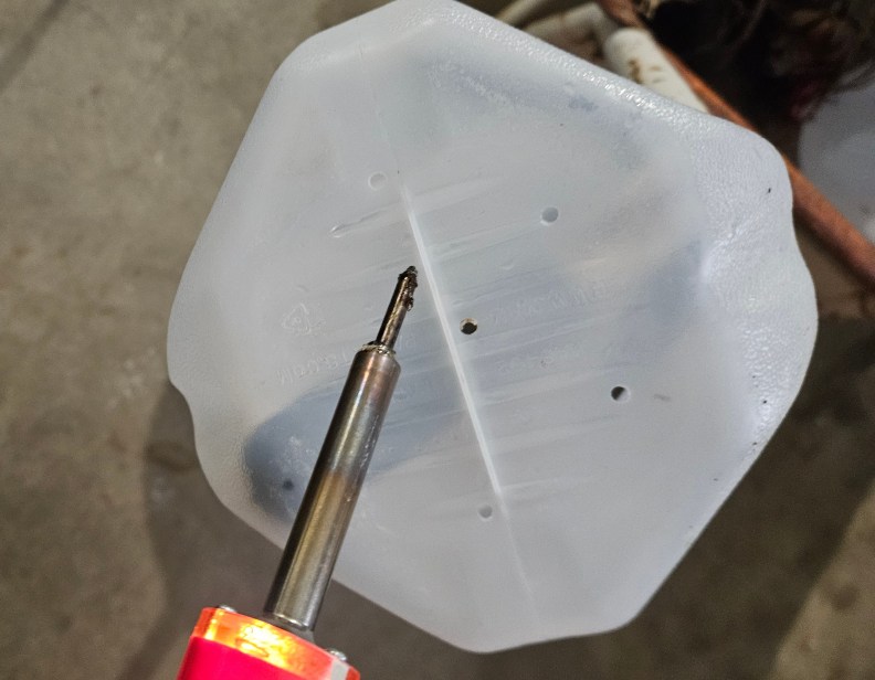 Clean the milk jug thoroughly. Using a nail, punch several drainage holes in the bottom. Remove and discard the cap.