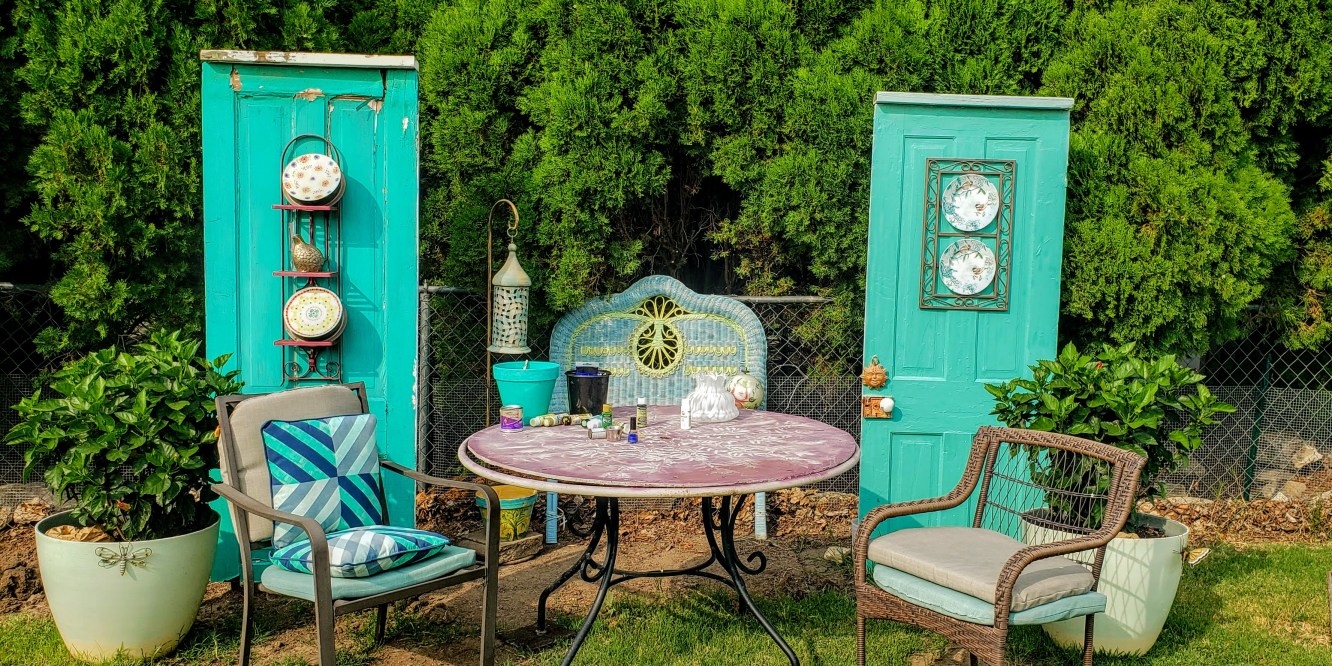 I also take ordinary household items and repurpose them to be garden items. Throughout 25 years friends and family have given me objects for my gardens. When I am working or enjoying my yard/garden I regularly recall the memories of the people and the moment I received them items. I will find a place for everything!